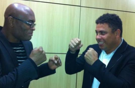 Anderson Silva e Ronaldo se encontram nos bastidores do aniversário corintiano |