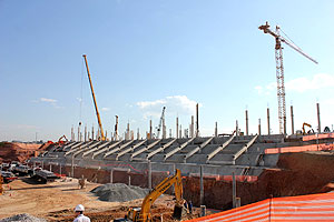 As obras do estádio sede da abertura da Copa do Mundo 2014 já estão com mais de 20% de seu total prontas. Segundo a Odebrecht, empreiteira responsável pela obra, as vigas de todas as arquibancadas são feitas com peças pré-moldadas de concreto e fabricadas dentro do próprio canteiro.